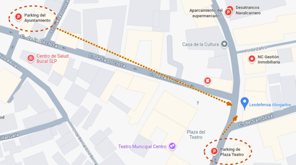 En caso de usar transporte privado, cerca del despacho hay dos aparcamientos de pago. El más cercano se encuentra en la misma Plaza del Teatro y a menos de 200m está el Parking del Ayuntamiento.